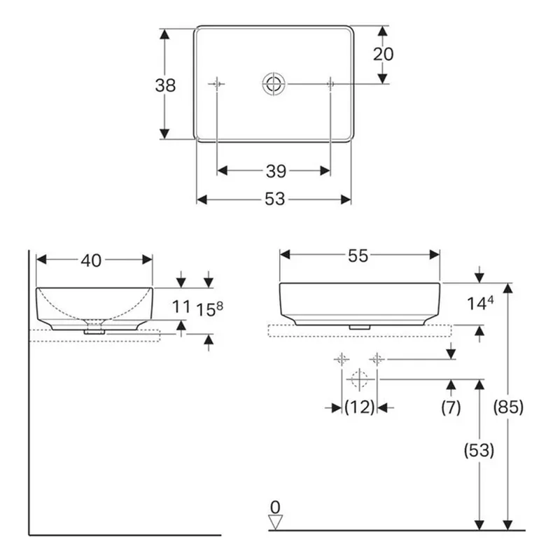 Geberit VariForm pultra ültethető mosdó, szögletes 55x40 cm