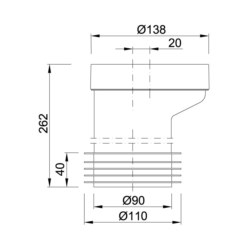 Styron WC-bekötő, 20-mm eltolású, hosszú