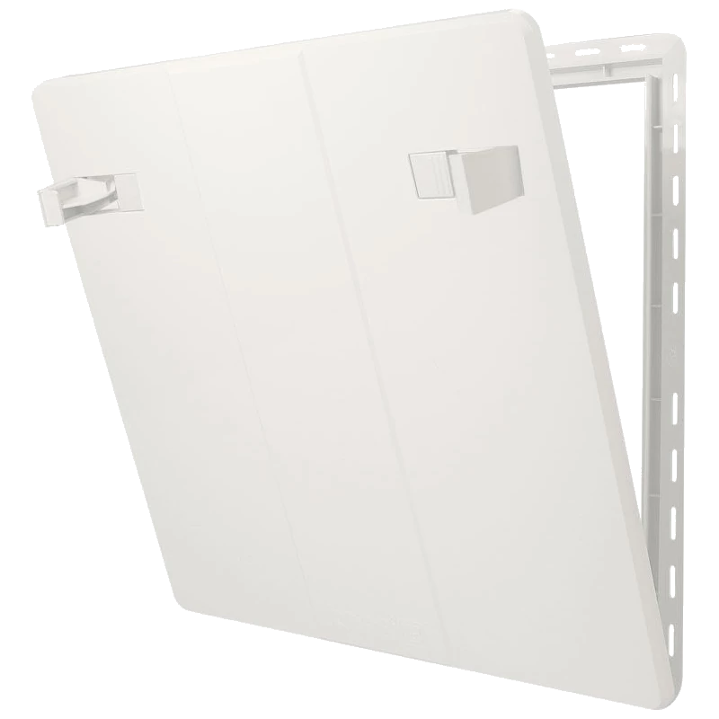 Haco revíziós, fehér ASA műanyag szerelő ajtó amely ellenáll az UV sugárzásnak így nem sárgul be.