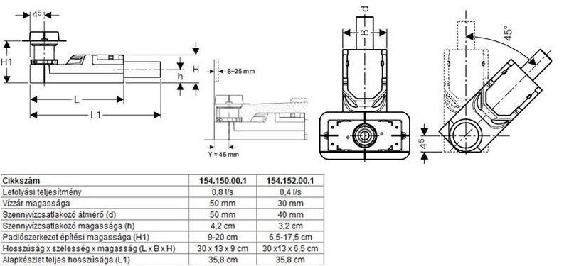 Lefolyási teljesítmény: 0,8 l/s.