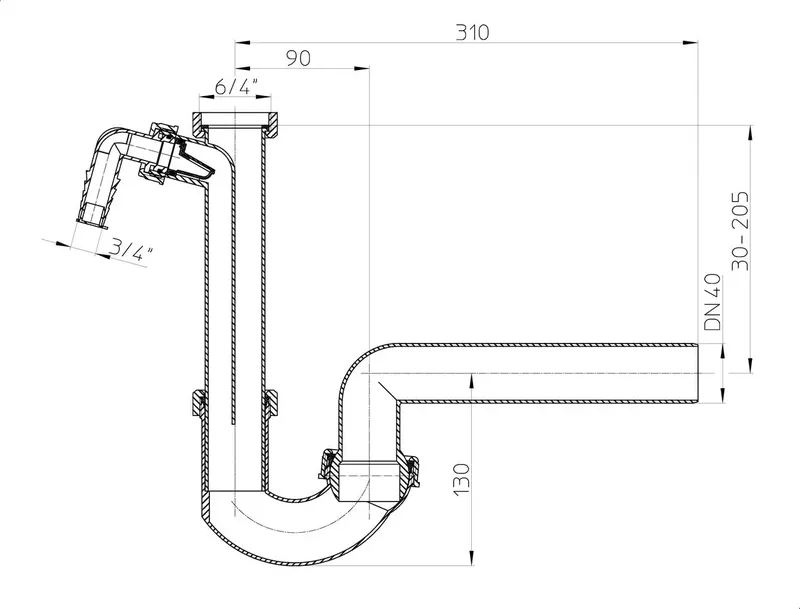 HL Szifon DN40x6/4' gömbcsuklóval és mosógép tömlő csatlakozóval