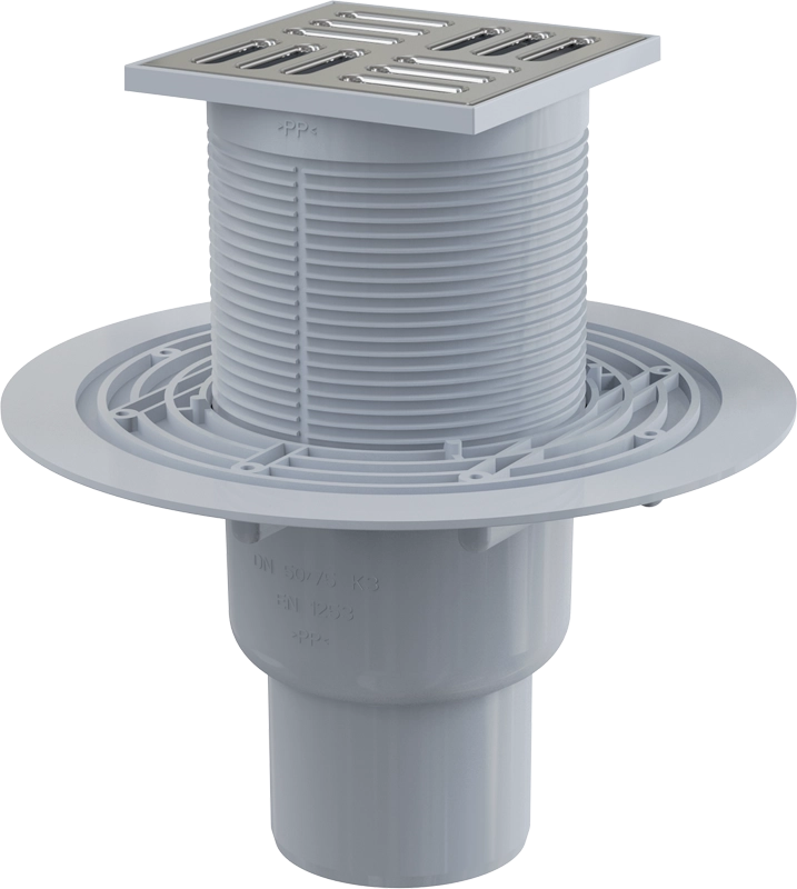 Alca APV2321 Padlóösszefolyó 105x105/50/75 mm függőleges, rozsdamentes rács, kombinált SMART bűzzár