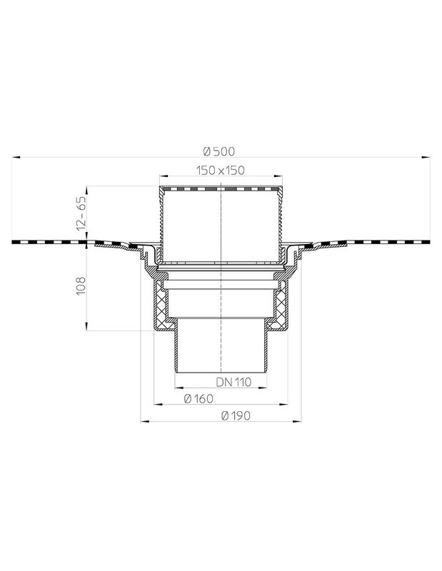 HL62BH/1 Tetőlefolyó DN110 szigetelőkarimával, gyárilag felhegesztett bitumengallérral, 148x148mm/137x137mm lefolyóráccsal