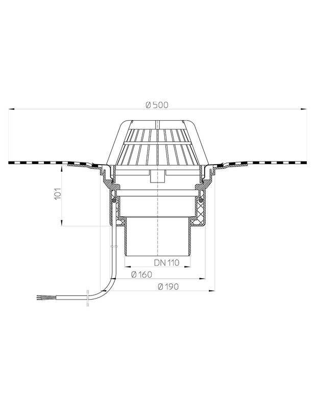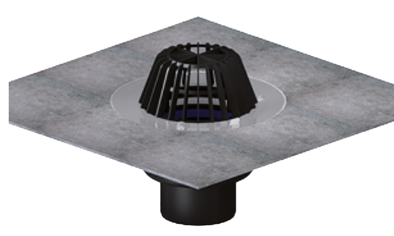 HL62H/1 Tetőlefolyó DN110 szigetelőkarimával, gyárilag felhegesztett bitumengallérral, 148x148mm/137x137mm lefolyóráccsal