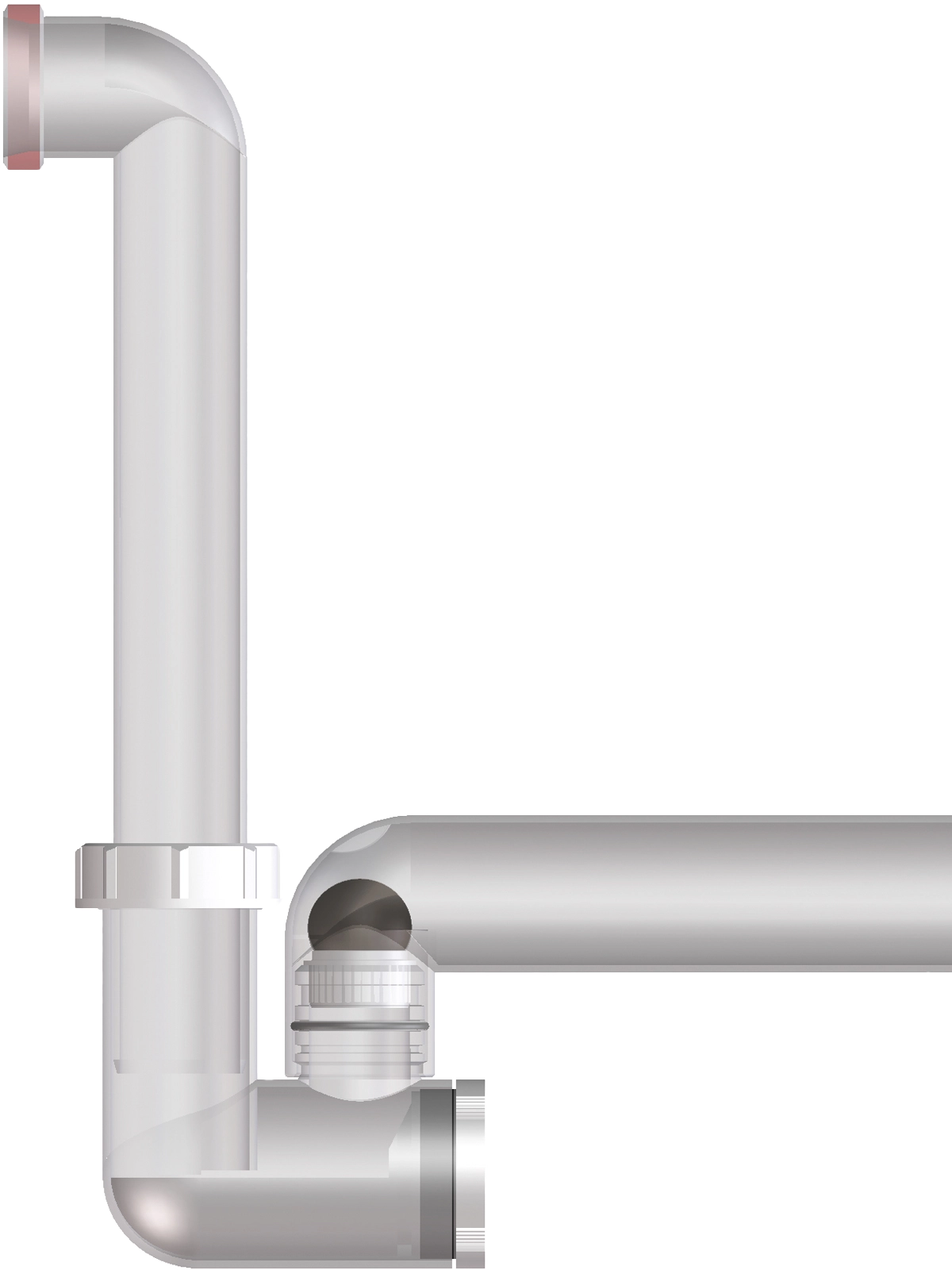 Kondenzátum szifon átlátszó testtel, DN40 vízszintes elhúzással.