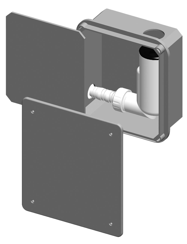 Klíma- és kondenzátum szifon falba süllyesztve a kondenzvíz bűzzárón történő lefolyórendszerbe vezetéséhez DN32 függőleges kimenettel.