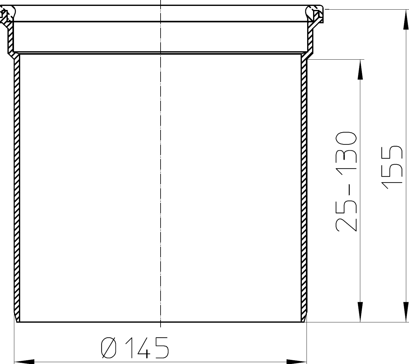 Csatlakozó méret 145 mm. Beépítési magasság 155 mm.