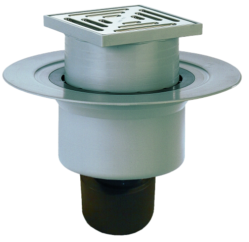 image-db40e015.png HL317 Padlólefolyó DN50/75/110 függőleges kimenettel, szigetelő karimával, bűzzárral, 147x147mm/138x138mm