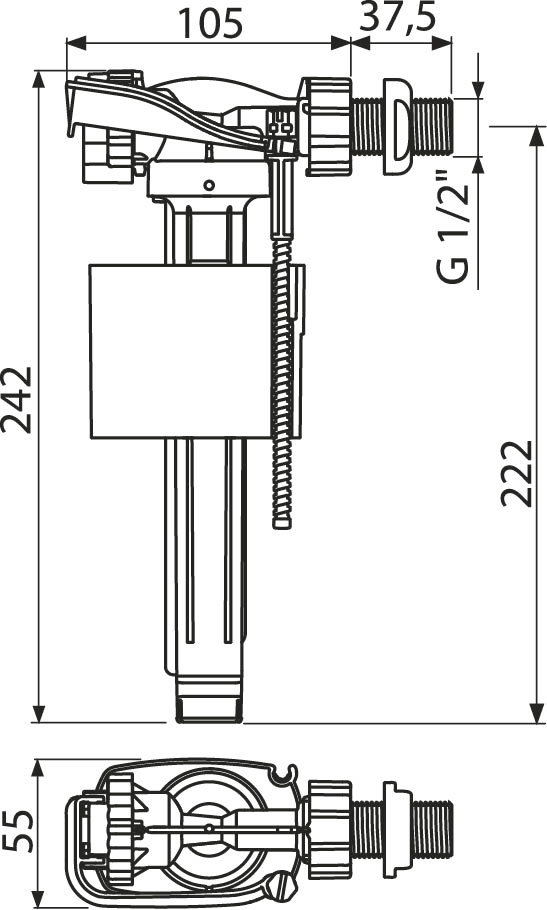 Feltöltő szelep oldalsó kerámia tartályokhoz.