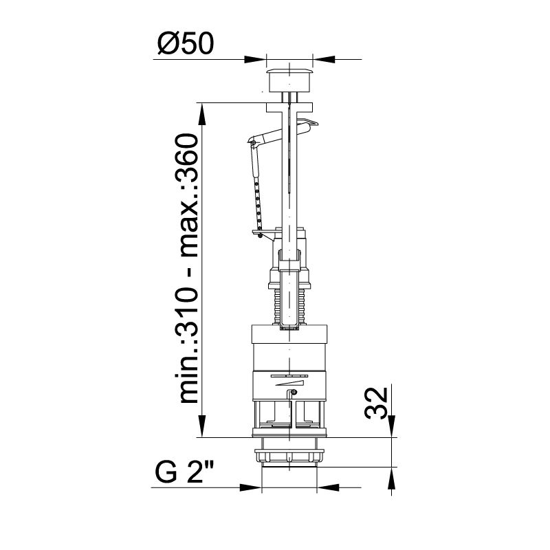 Falon kívüli WC tartályhoz. Leeresztő mechanizmus: mechanikus nagy öblítés.
