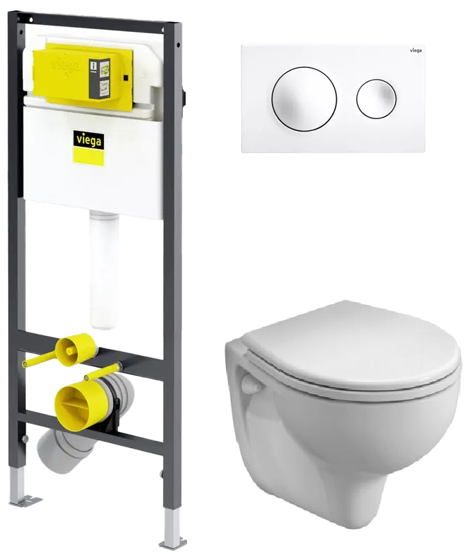 Viega Prevista falba építhető WC tartály fehér nyomólappal, fali WC csészével