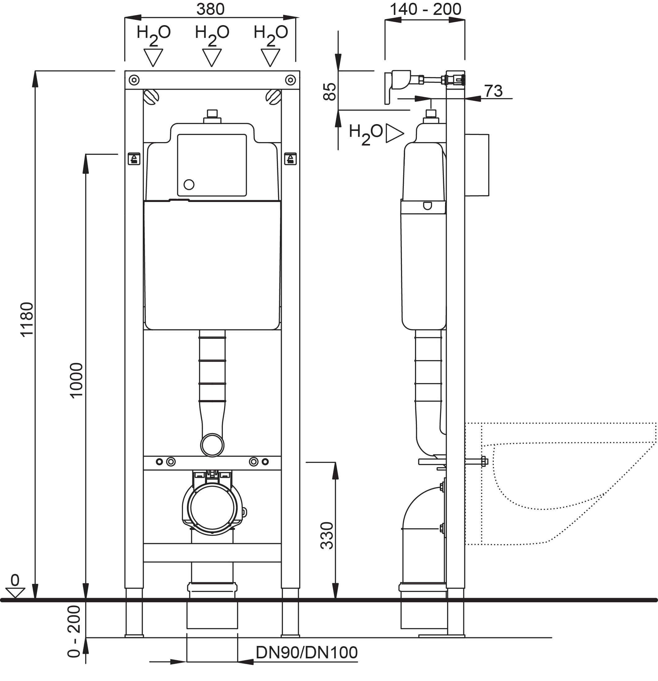 • Mélységben állítható szennyvízcső (+/-10 mm)
