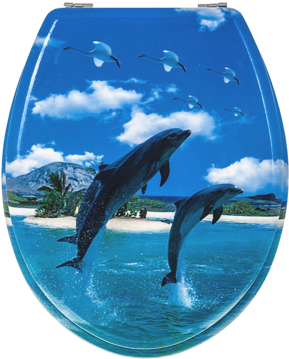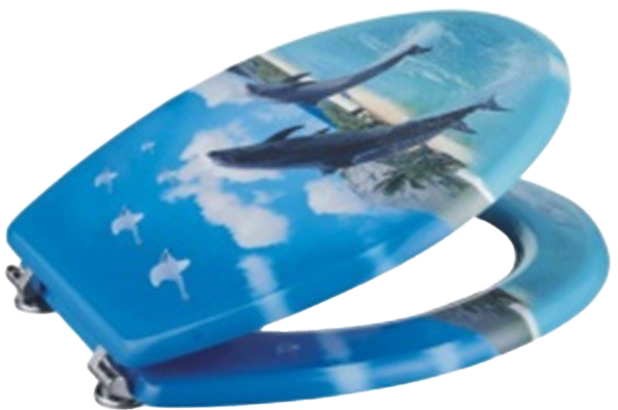 Styron Delfin Mdf WC-ülőke, színes, delfinek (ugró) mintázatú, fémzsanérral.