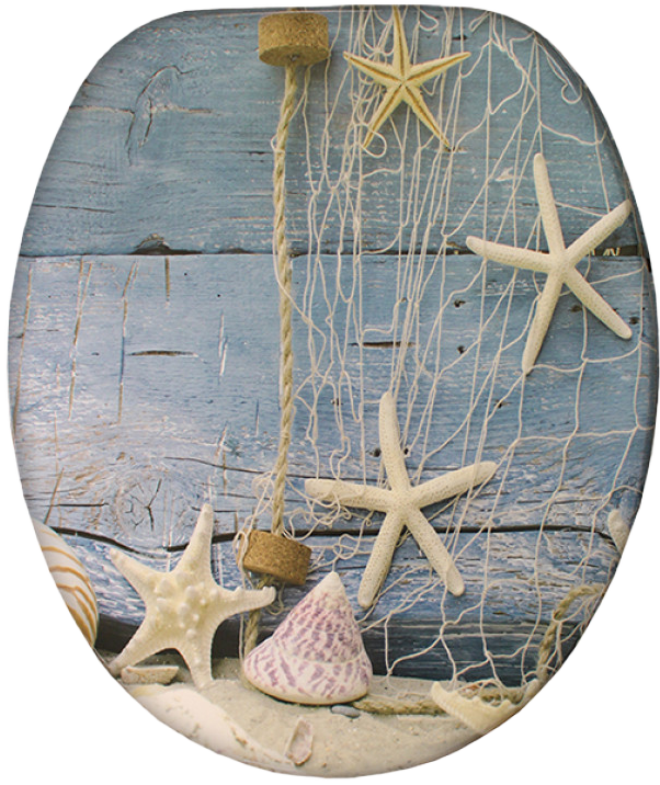 Styron Azúr Mdf WC-ülőke, színes, tengeri csillag mintázatú, fémzsanérral.