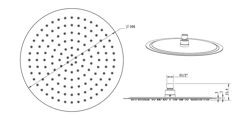 Sapho Slim fejzuhany,kör, 300mm, inox