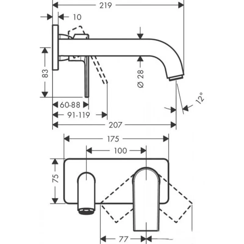 Szükséges alkatrészek: Alaptest egykaros mosdócsaptelephez, falsík alatti szereléshez 13622180 (külön szükséges megvásárolni)