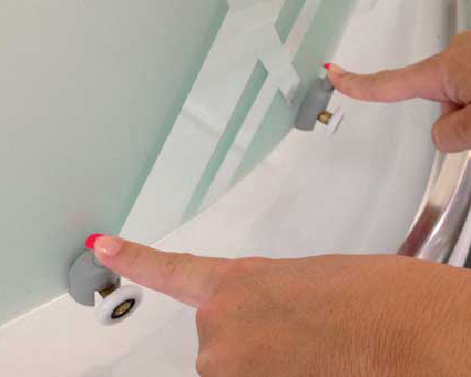 Dupla görgős, két oldalra csúszó kabinajtó.