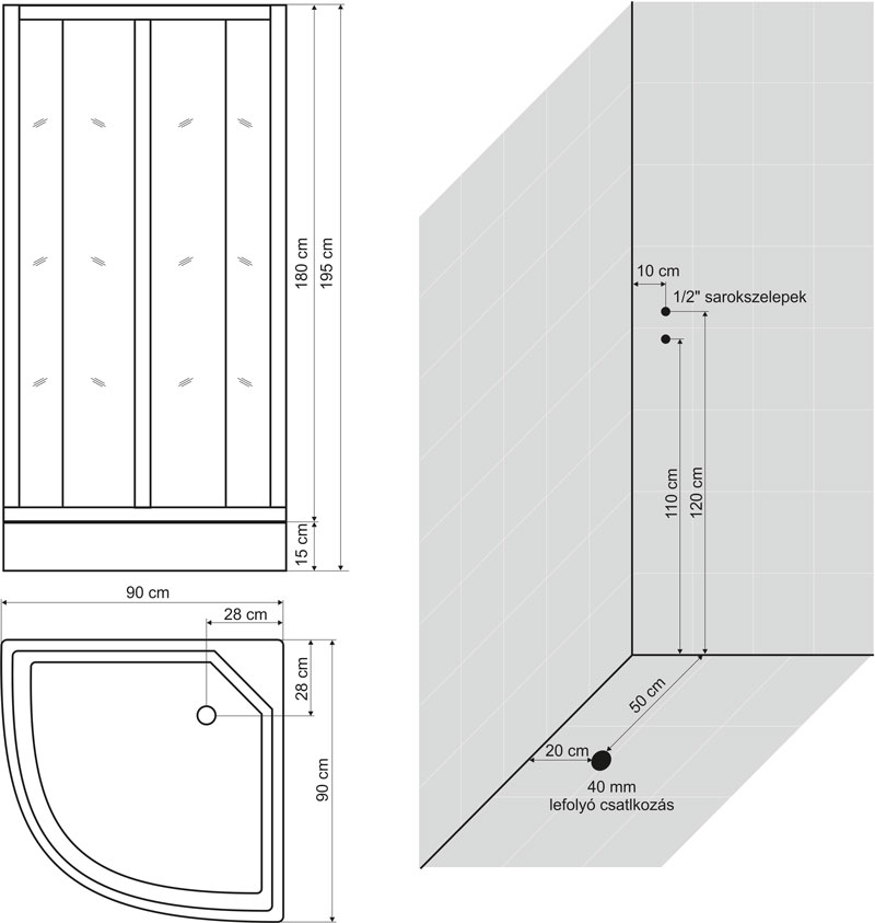 Niagara Wellness Nicole White 90x90 negyedköríves zuhanykabin zuhanytálcával