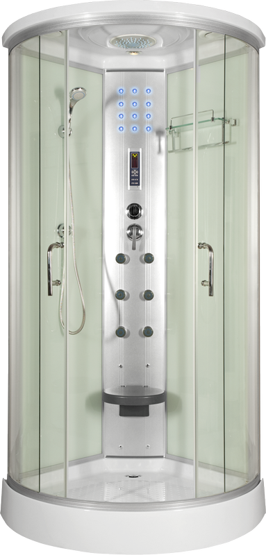 Negyedköríves hidromasszázs zuhanykabin elektronikával 90 x 90 x 215 cm.