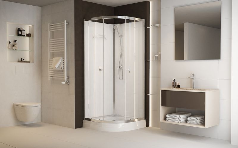 Sanimix üveghátfalas negyedköríves zuhanykabin tálcával 90 cm