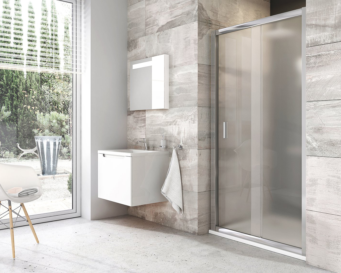 A zuhanyajtó BLPS fix oldalfallal kombinálva a fürdőszoba lecsempézett sarkába, vagy egy előre kialakított zuhanyfülkébe