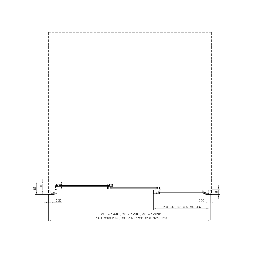 A termék egy fix és két toló elemet tartalmaz. A termék 180°-os elforgatásával bal- vagy jobb tolóajtó változatot kap.