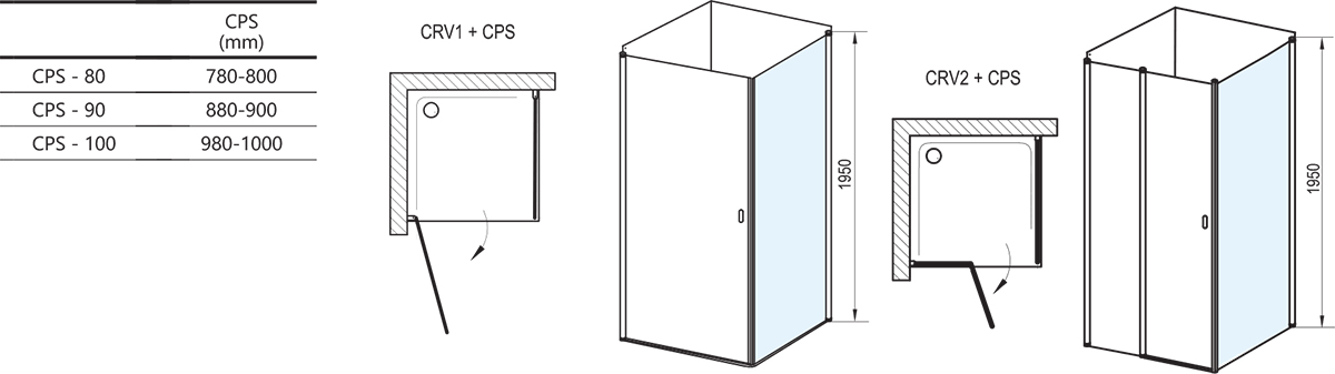 A fix fal csak a CRV1 és CRV2 termékekkel kombinálható, a CSD1, CSD2 és CSDL2 ajtókkal való kombinációja nem lehetséges.