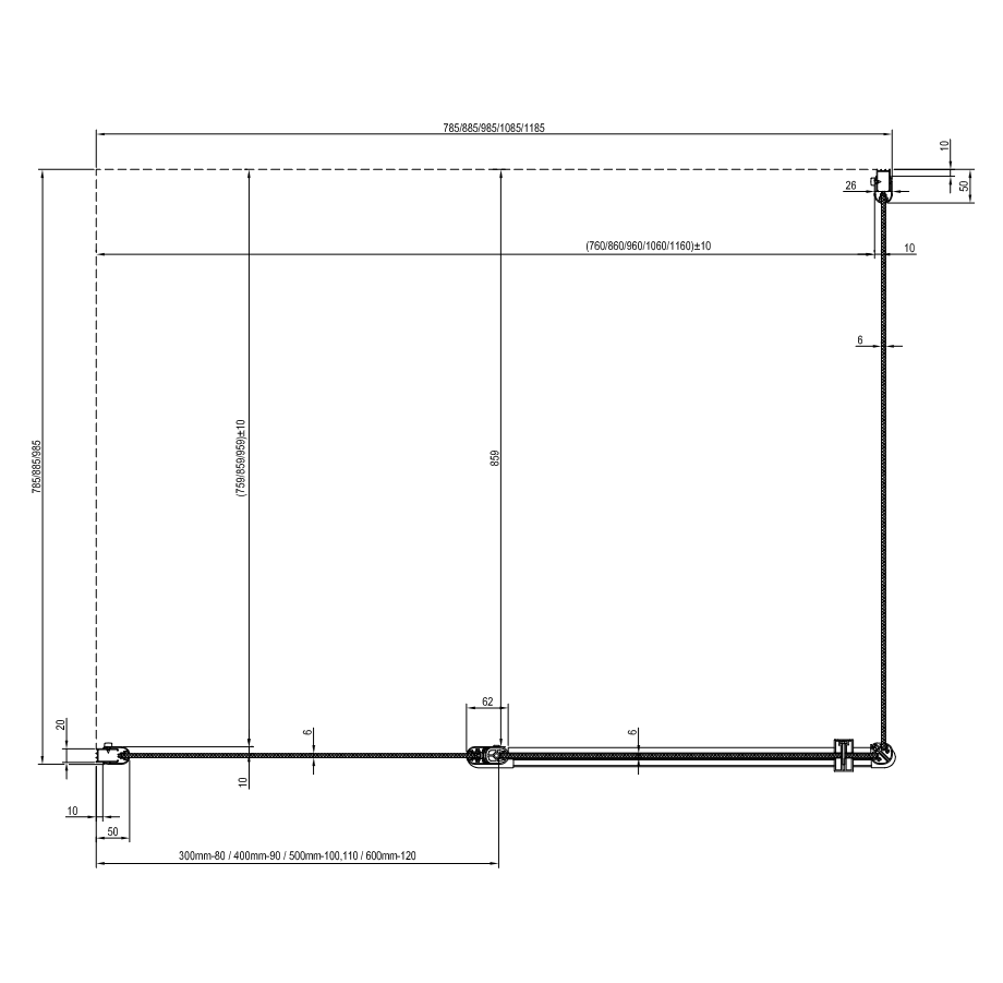 Egyenes, fix üvegfal, mely önállóan nem használható. A fix üvegfal tartozéka a távtartó.