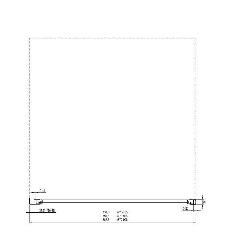 A falra történő rögzítéshez használjon beállító profilt, amelyet a zuhanyajtó vagy fülke csomagja tartalmaz. Az építési nyílás esetleges egyenetlenségeit NPS beállító profilokkal lehet kompenzálni.