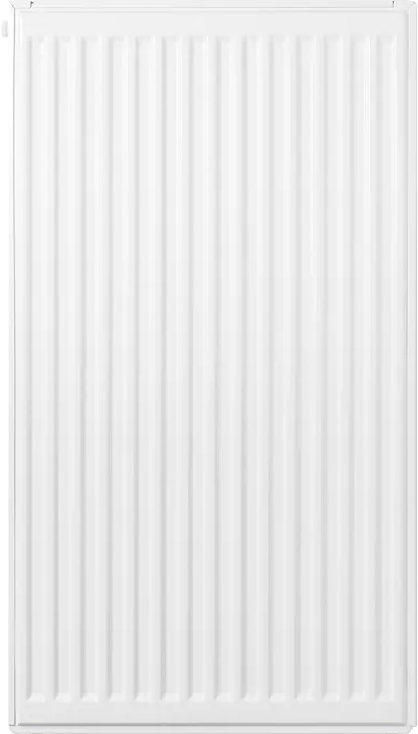 Lapradiátor konvektorlemezzel, felső- és oldalsó lefedésekkel, négypontos csatlakozással, oldalsó bekötési lehetőséggel.