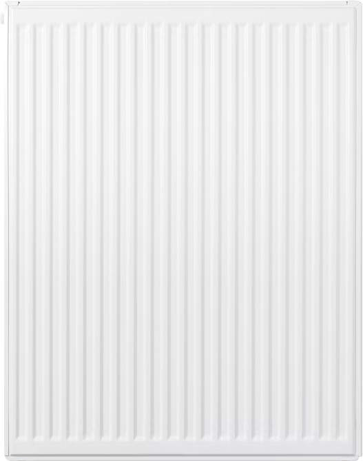 Lapradiátor konvektorlemezzel, felső- és oldalsó lefedésekkel, négypontos csatlakozással, oldalsó bekötési lehetőséggel.