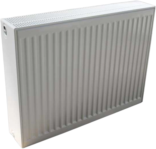 Lapradiátor konvektorlemezzel, felső- és oldalsó lefedésekkel, négypontos csatlakozással, oldalsó bekötési lehetőséggel.
