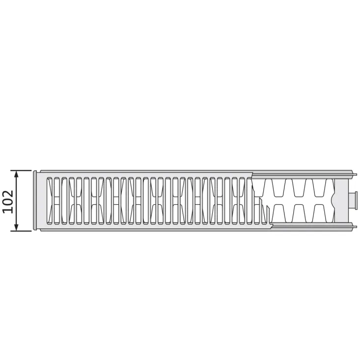 Lapradiátor konvektorlemezzel, felső- és oldalsó lefedésekkel, négypontos csatlakozással, oldalsó bekötési lehetőséggel.