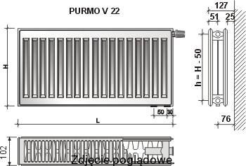Purmo acéllemez lapradiátor két soros, beépített szeleppel 22v 900x700