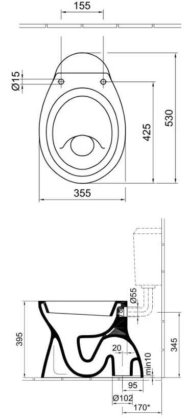 Alföldi Bázis álló WC 4030 laposöblítésű, hátsó kifolyású