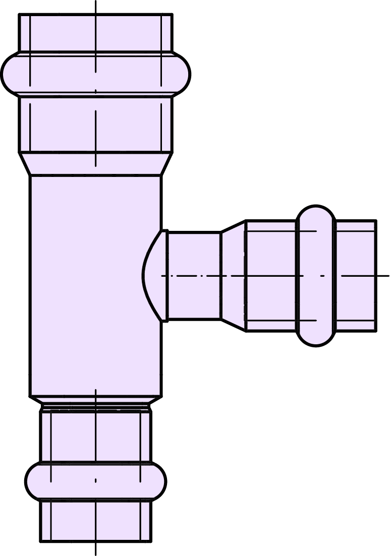 Áramlásoptimalizált présidomrendszer ötvözetlen, 1.0308 anyagszámú acélból készült présidomokkal. Kívül galvanikusan horganyzott (kék kromátozott). A présidomok a tömítőelem védelme érdekében hengeres csőbevezető toldattal vannak ellátva. A présidomok d64,0 mérettől nemesacél vágógyűrűvel rendelkeznek a kötés mechanikus terhelhetőségének biztosításához. A csővégek védelem céljából dugókkal vannak lezárva. A préselés a tömítőelem előtt és mögött is megtörténik (kettős préselés). Felszállóvezetékek és szinti leágazások vakolat elé és alá történő szereléséhez alkalmas.