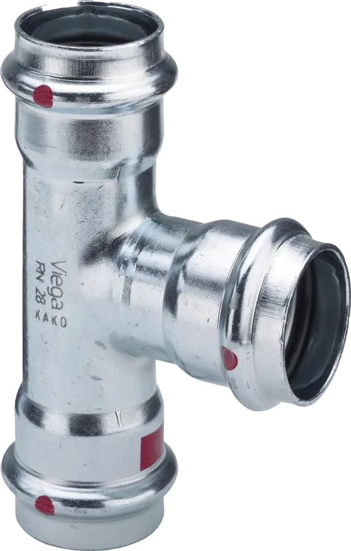 Áramlásoptimalizált présidomrendszer ötvözetlen, 1.0308 anyagszámú acélból készült présidomokkal. Kívül galvanikusan horganyzott (kék kromátozott). A présidomok a tömítőelem védelme érdekében hengeres csőbevezető toldattal vannak ellátva. A présidomok d64,0 mérettől nemesacél vágógyűrűvel rendelkeznek a kötés mechanikus terhelhetőségének biztosításához. A csővégek védelem céljából dugókkal vannak lezárva. A préselés a tömítőelem előtt és mögött is megtörténik (kettős préselés). Felszállóvezetékek és szinti leágazások vakolat elé és alá történő szereléséhez alkalmas.