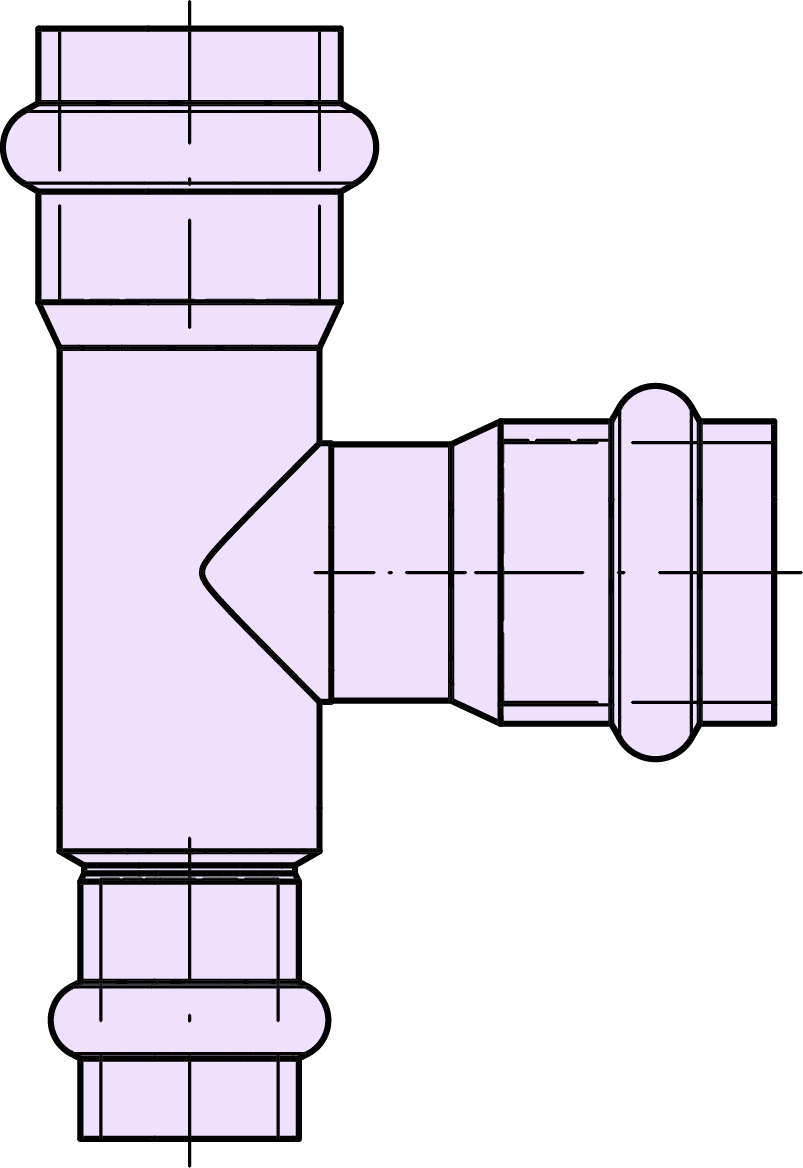 Áramlásoptimalizált présidomrendszer ötvözetlen, 1.0308 anyagszámú acélból készült présidomokkal. Kívül galvanikusan horganyzott (kék kromátozott). A présidomok a tömítőelem védelme érdekében hengeres csőbevezető toldattal vannak ellátva. A présidomok d64,0 mérettől nemesacél vágógyűrűvel rendelkeznek a kötés mechanikus terhelhetőségének biztosításához. A csővégek védelem céljából dugókkal vannak lezárva. A préselés a tömítőelem előtt és mögött is megtörténik (kettős préselés). Felszállóvezetékek és szinti leágazások vakolat elé és alá történő szereléséhez alkalmas.