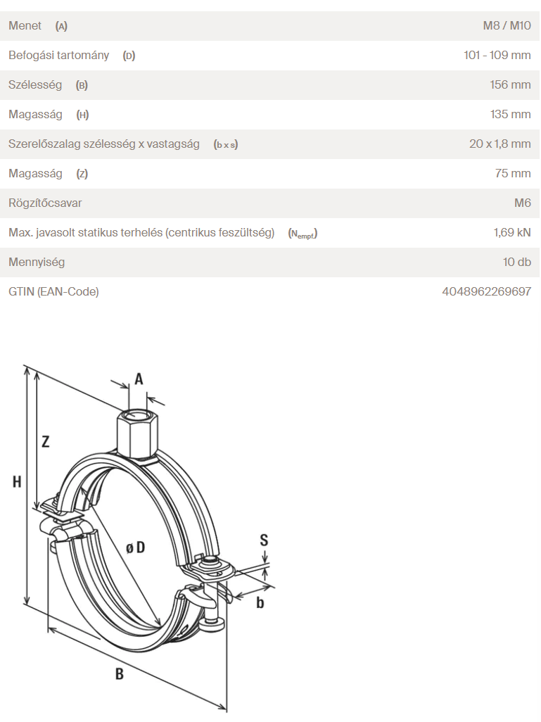 Kialakítása lehetővé teszi a 8-119 mm külső átmérőjű csővezetékek biztonságos rögzítését egy menetes szárral vagy tőcsavarral beltérben, az R 120 és az MLAR tűzvédelmi követelményeknek megfelelően.