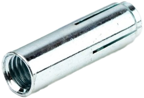Fémdübel belső menettel, mely metrikus menettel rendelkező menetes szárral vagy csavarral is kompatibilis.