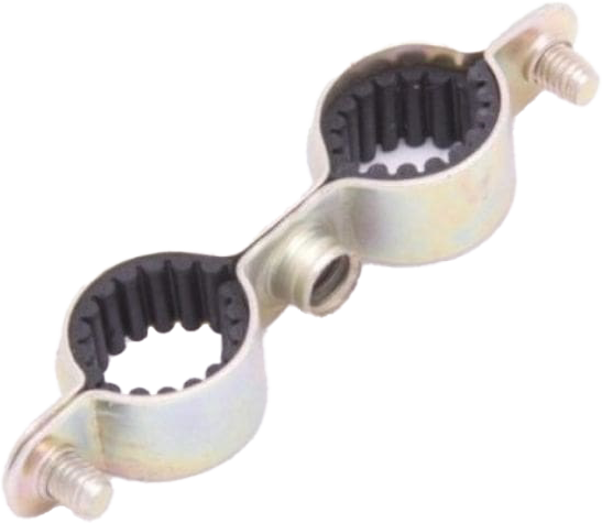 A kettős fém csőbilincs tőcsavarokkal, beütődübellel és toldókkal használható.