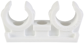 Fehér színű műanyag bilincs amely rézcsövek rögzítésére szolgál.
