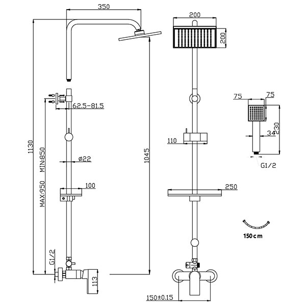 Hőoszlop magassága: rugalmas - 84-131 cm közötti tartományban