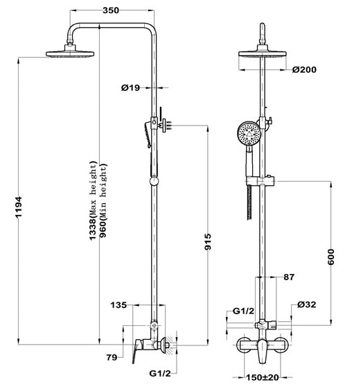 Max. magasság: 1338 mm