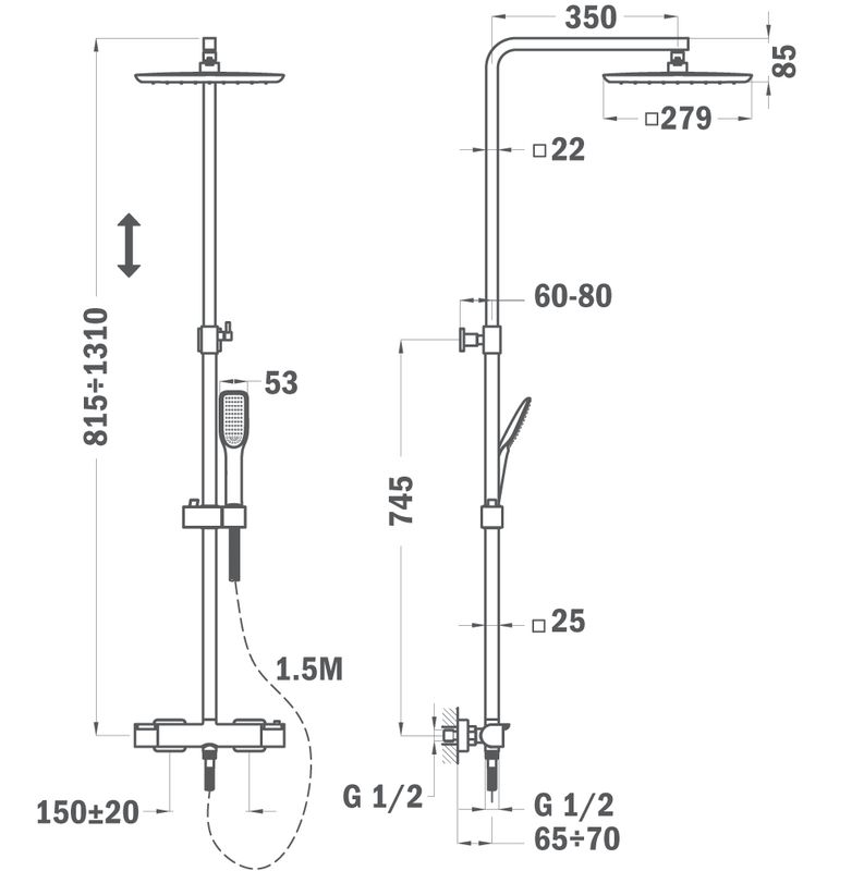 Strohm Teka Formentera zuhanyrendszer termosztátos csapteleppel