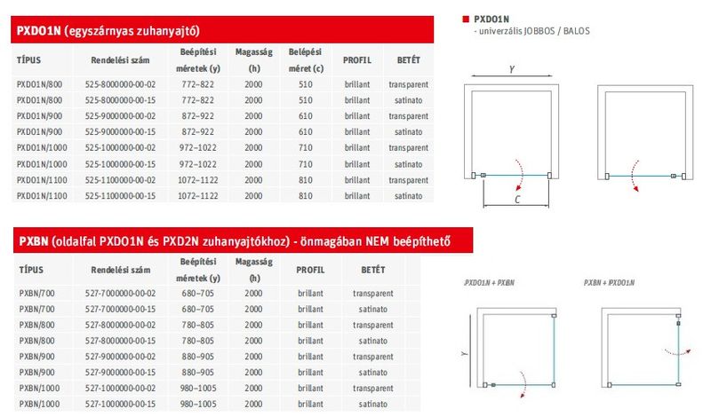 Beépítés két fal közé Kombinálható PXBN zuhanyfallal, így tetszőleges méretű zuhanykabint alakíthatunk ki.