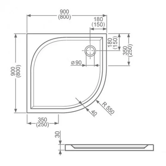 Ravak Galaxy Elipso PRO negyedköríves öntöttmárvány zuhanytálca előlap.