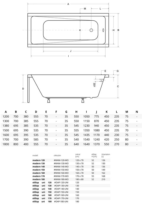 Niagara Modern/Boni 170x70 akril fürdőkád