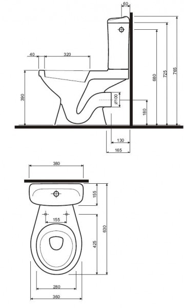 Monoblokkos WC-csésze,hátsó kifolyású ( M13200)