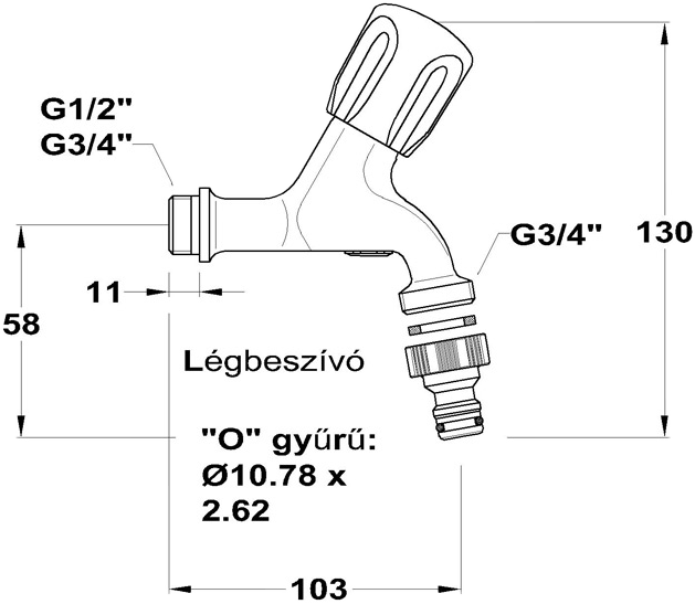 Mofém kifolyószelep légbeszívóval 1/2"-3/4"